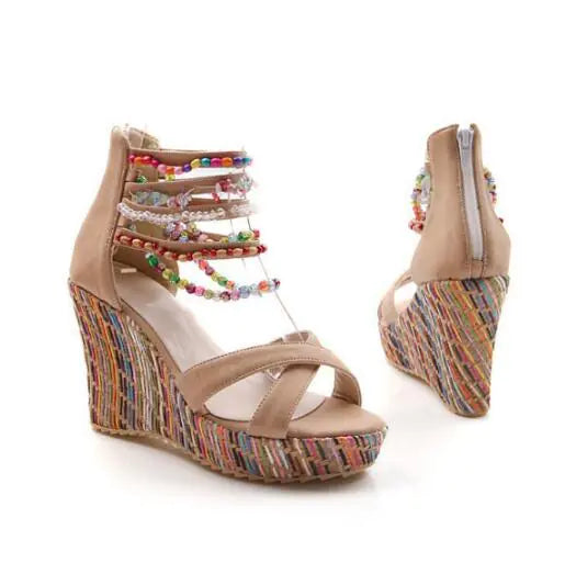 Wedge Bohemian Style Beaded Sandals